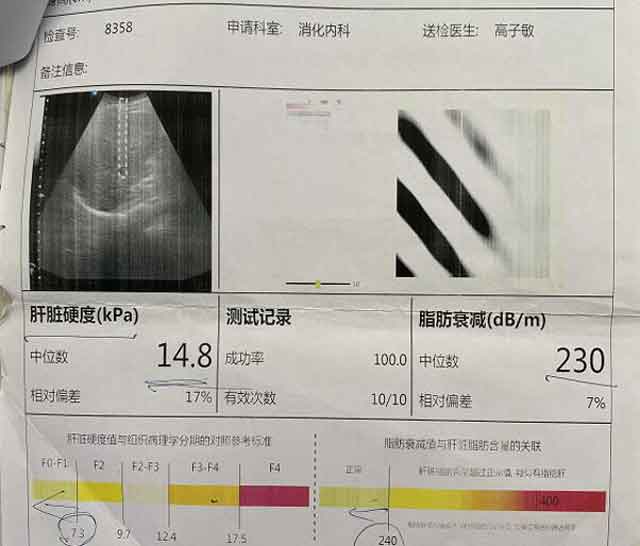 手握着检查单,心里有着说不清的感触,从一开始的14.8,到现在的7.7,真的有种从地狱到天堂的感觉,肝硬化真的逆转了.回想当时第一次来院时的情况:面色暗淡、皮肤黄、厌食乏力、精神状态差、烦躁易怒、肝区疼痛,检查结果显示:丙型肝炎、彩超检查:肝硬化、胆囊壁厚毛糙,肝弹结果14.8,对于30岁的蔡女士来讲,这个结果无疑是个噩耗.
